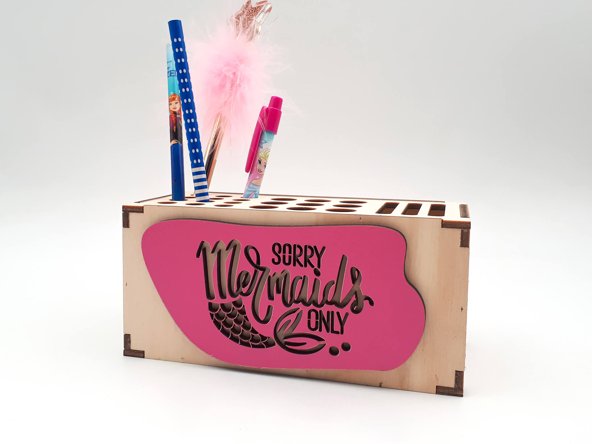 Ξύλινη μολυβοθήκη mermaid με στρογγυλές θήκες για στυλό και μολύβια!