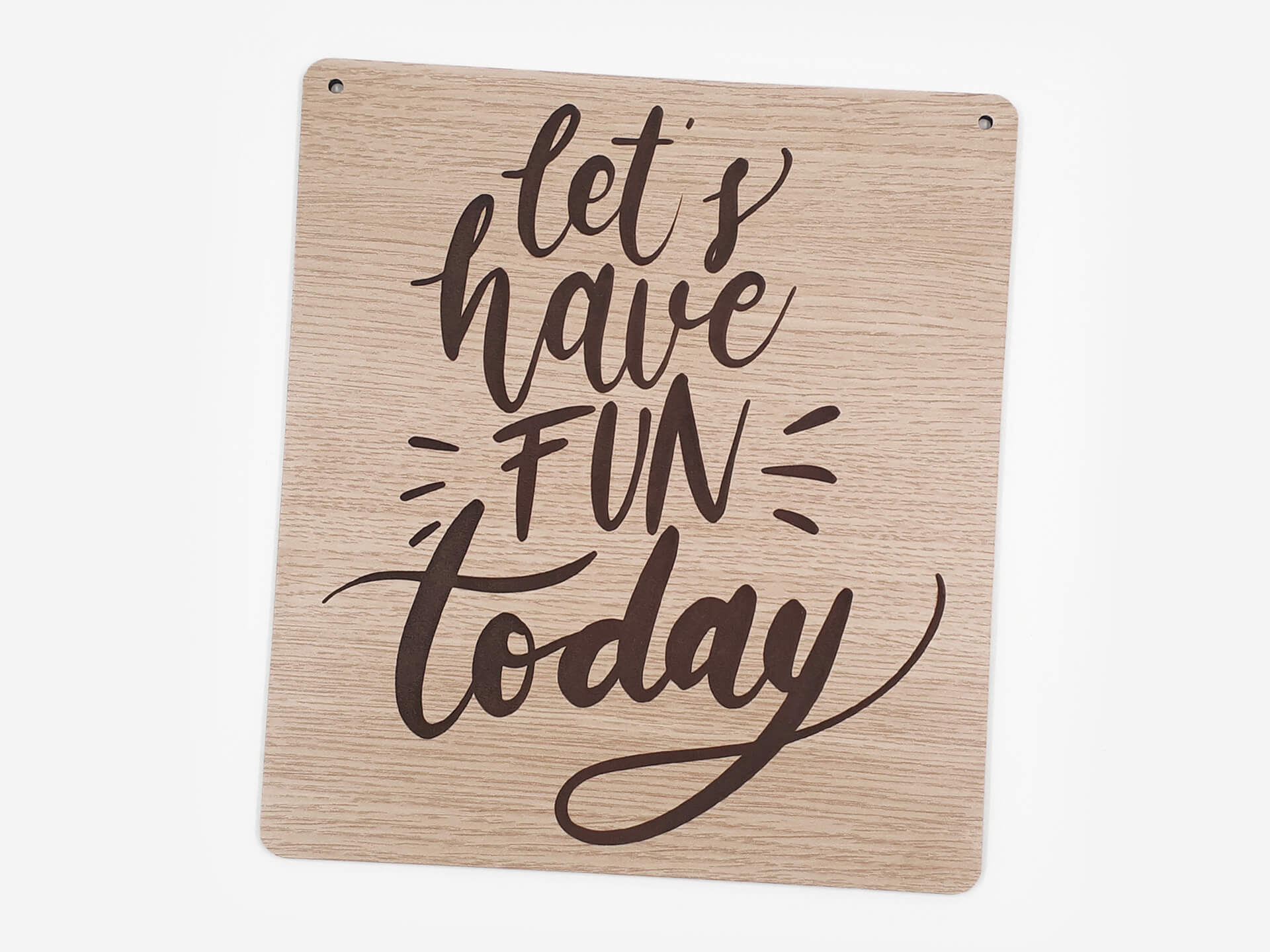 Ιδιαίτερη ξύλινη ταμπέλα για τη διακόσμηση του χώρου σας με θέμα "Have Fun Quote". Χάραξη κειμένου "Let's have fun today". Ένα ακόμα πρωτότυπο δώρο για τα αγαπημένα σας πρόσωπα.
