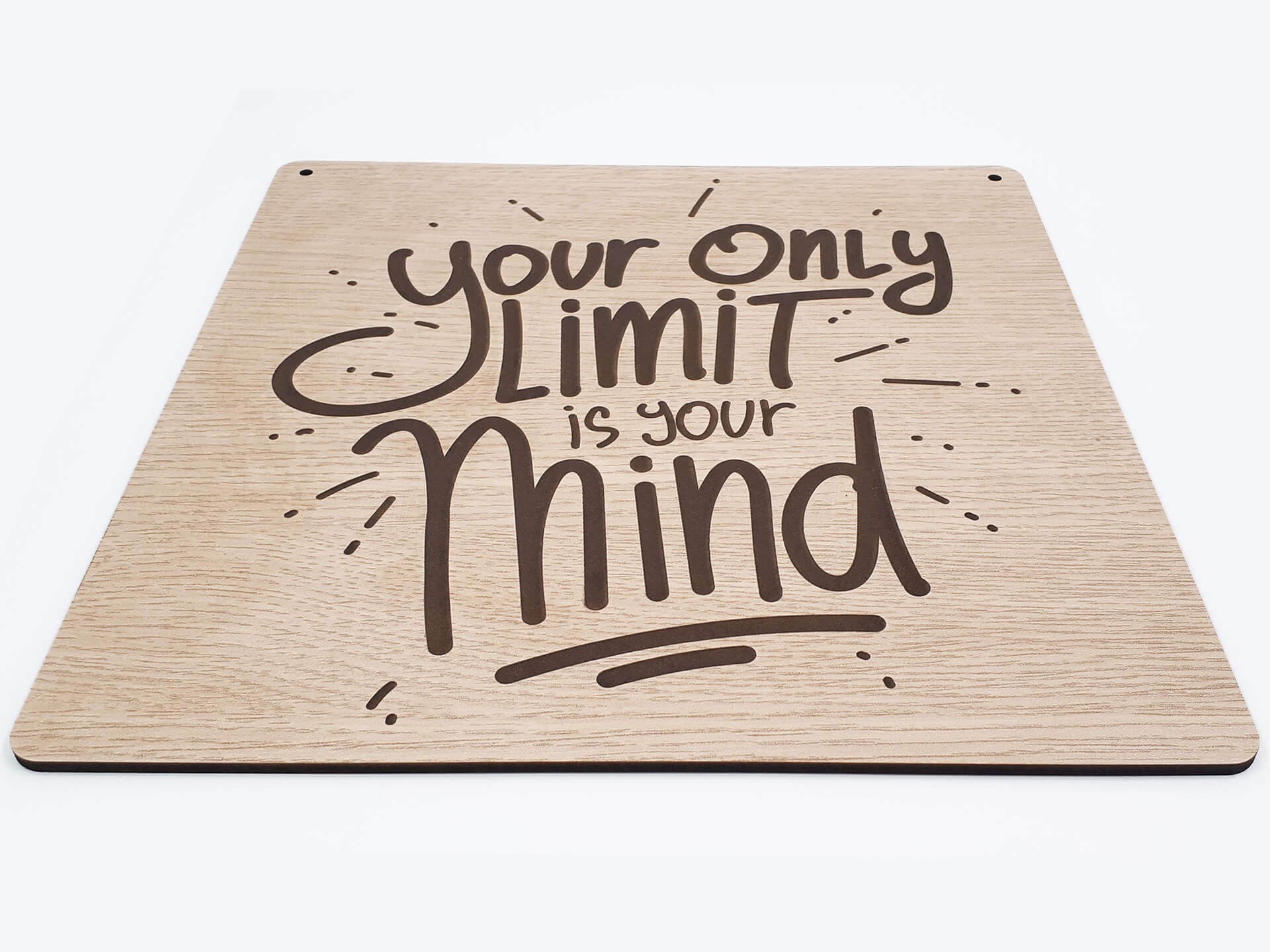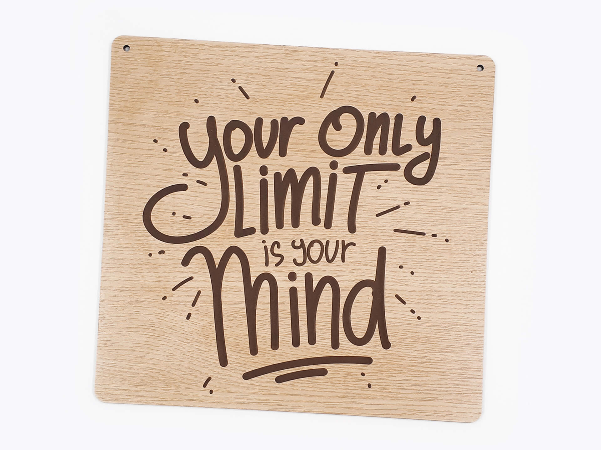 Ιδιαίτερη ξύλινη ταμπέλα για τη διακόσμηση του χώρου σας με θέμα "Limit Quote". Χάραξη κειμένου "Your only limit is your mind". Ένα ακόμα πρωτότυπο δώρο για τα αγαπημένα σας πρόσωπα.