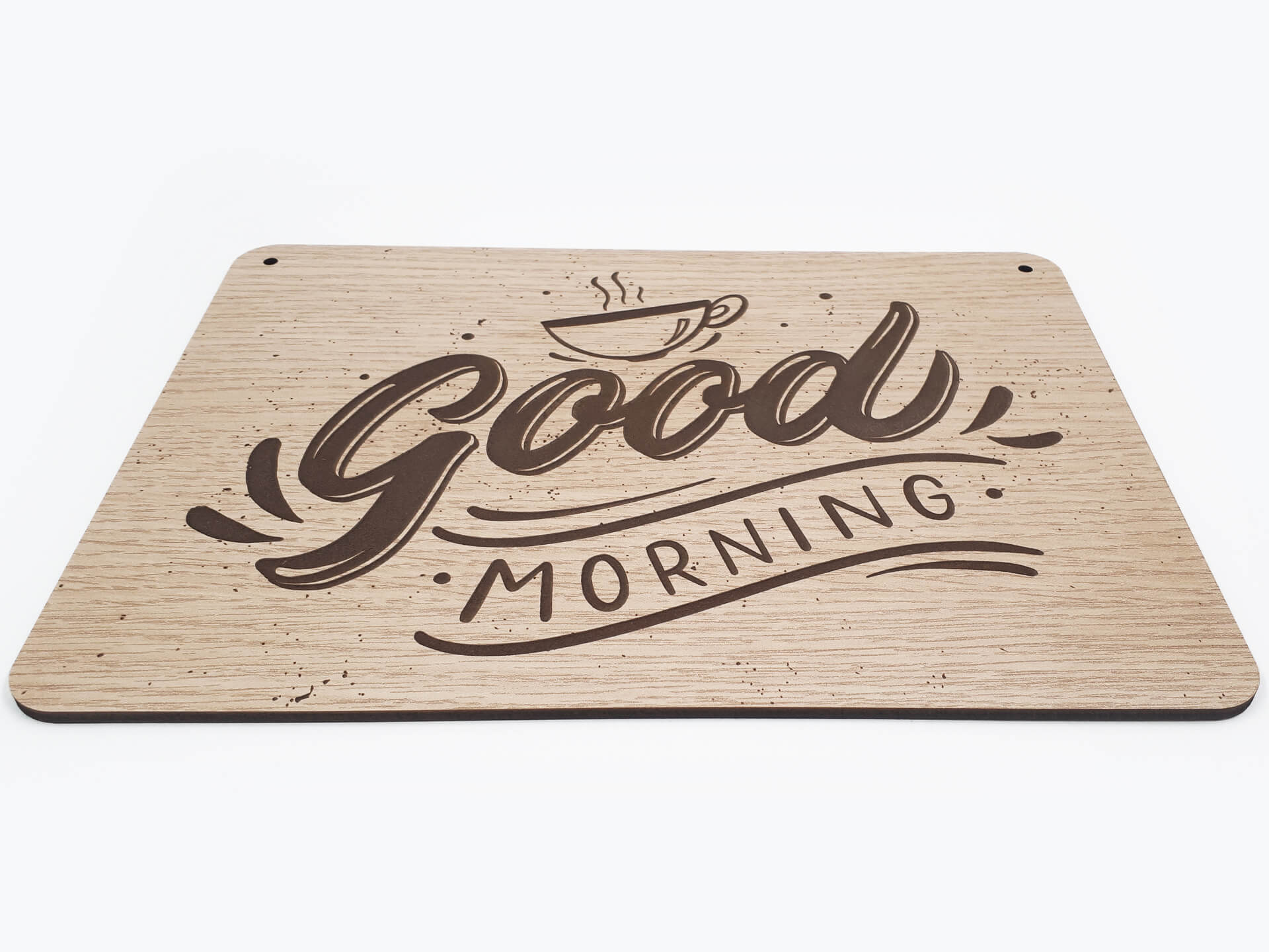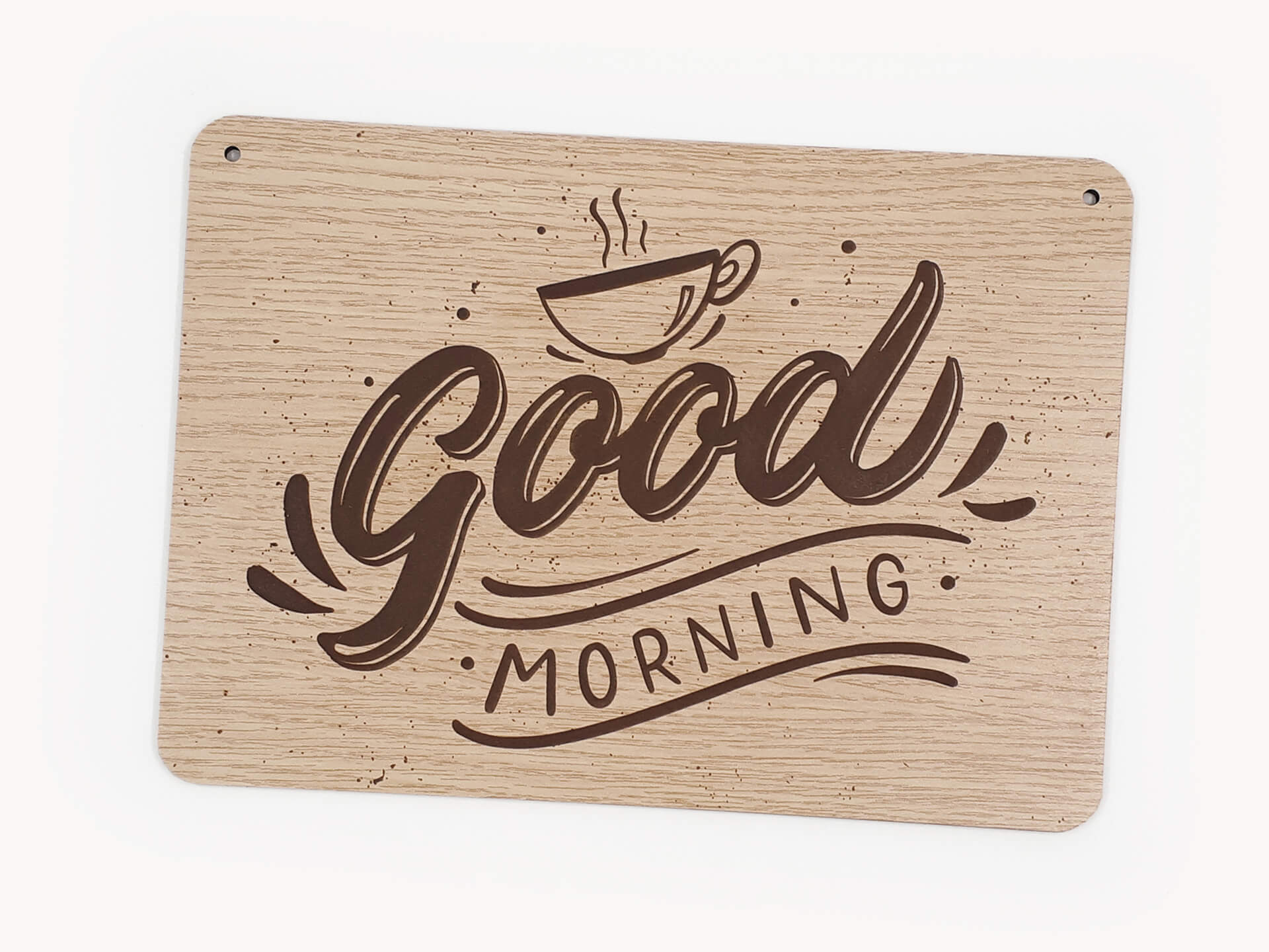 Ιδιαίτερη ξύλινη ταμπέλα για τη διακόσμηση του χώρου σας με θέμα "Morning Quote". Χάραξη κειμένου "Good morning". Ένα ακόμα πρωτότυπο δώρο για τα αγαπημένα σας πρόσωπα.
