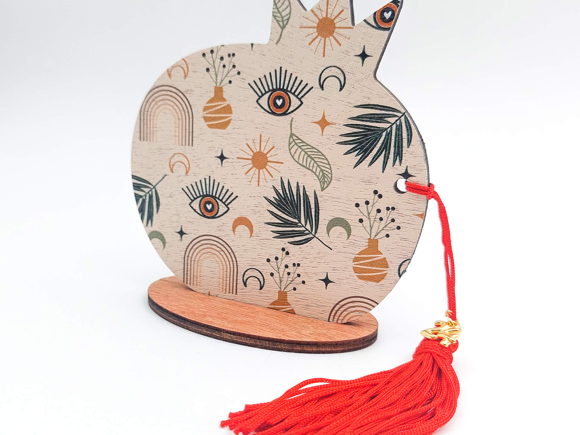 • Υλικά: Κόντρα πλακέ ξύλο πάχους 4mm με εκτύπωση, Κόκκινη φούντα