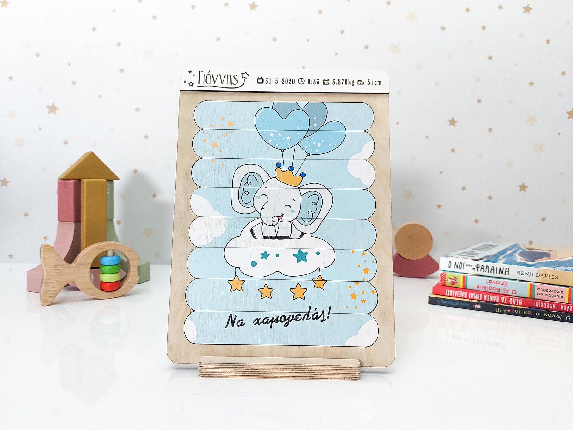 Ξύλινο διακοσμητικό puzzle “Ελεφαντάκι στα σύννεφα”