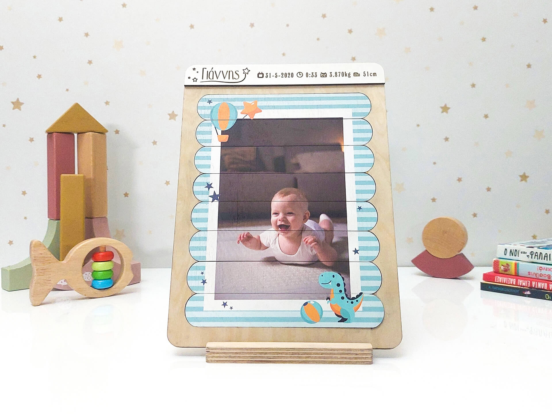 Ξύλινο διακοσμητικό puzzle “Γαλάζια Κορνίζα” με εκτύπωση φωτογραφίας