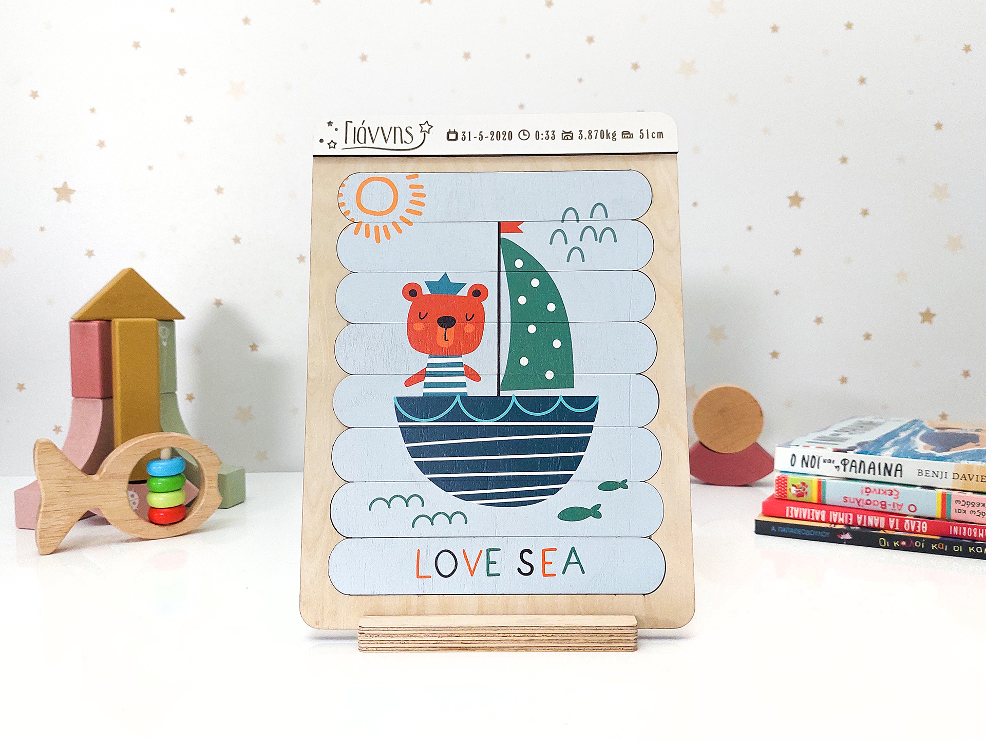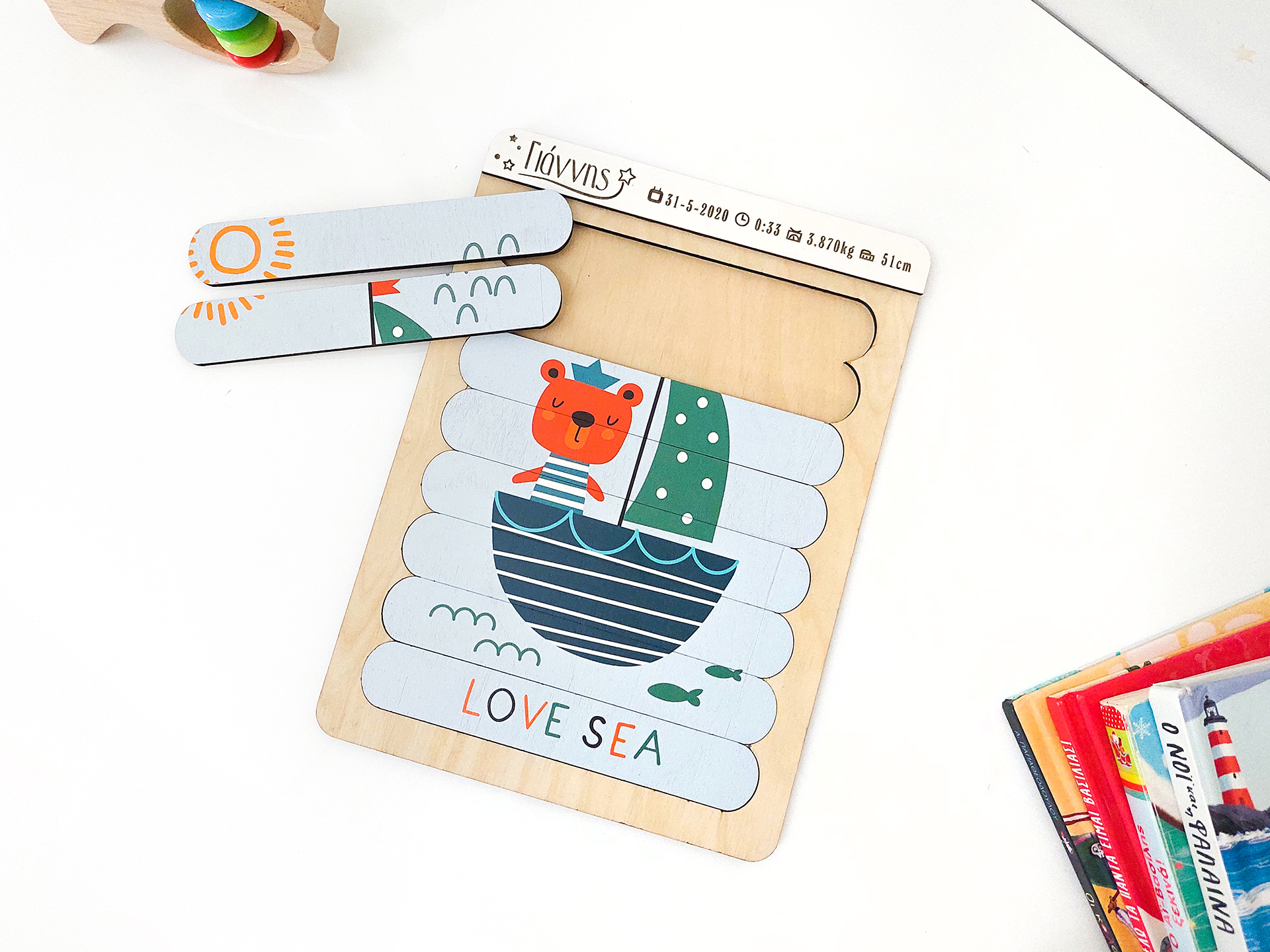 Ξύλινο διακοσμητικό puzzle “Το ναυτάκι αρκουδάκι”