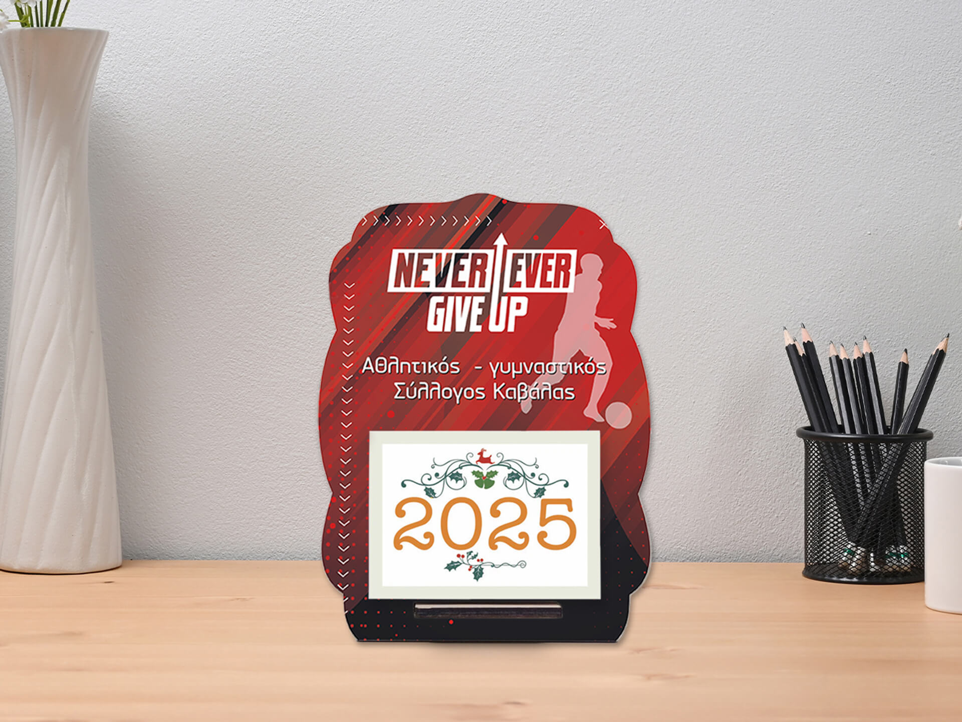 Ξύλινο Ημερολόγιο “Never Give Up”