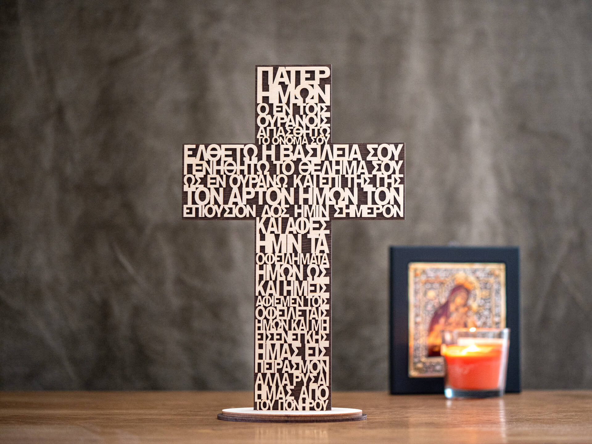 Ξύλινος Επιτραπέζιος Σταυρός ”Πάτερ Ημών”