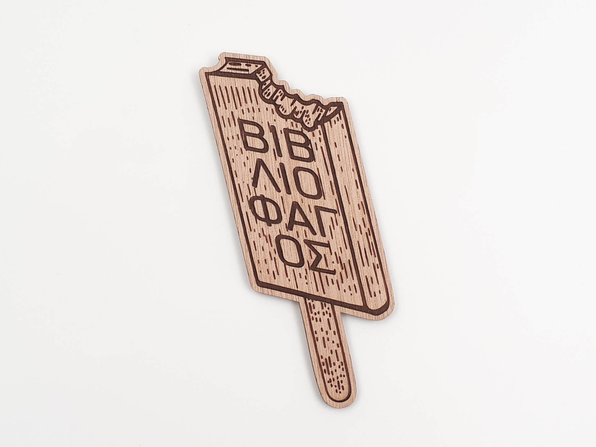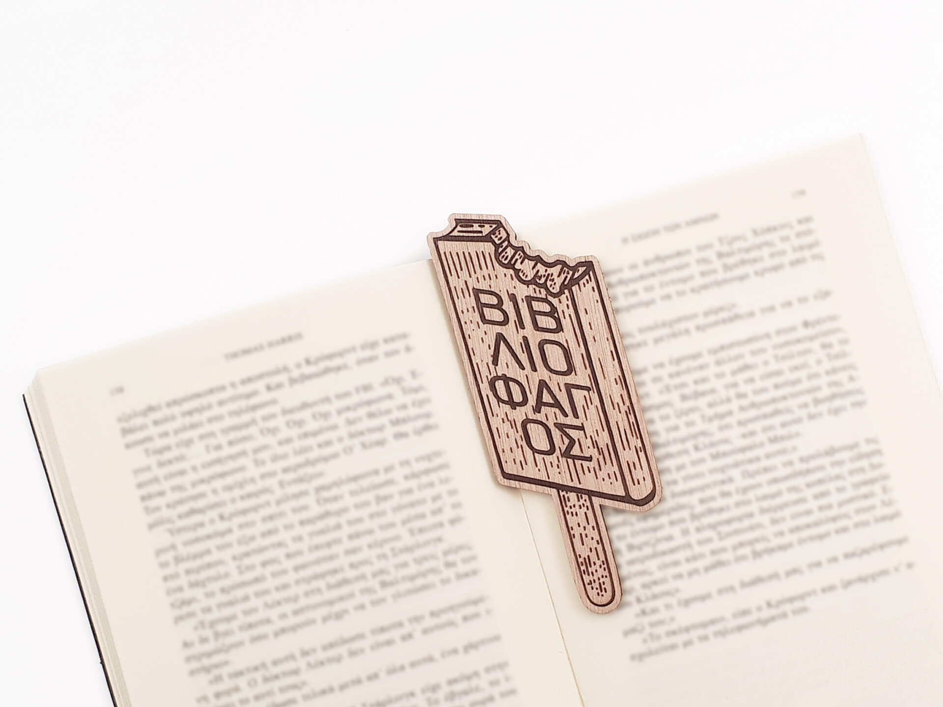 Ξύλινος σελιδοδείκτης σε σχήμα παγωτού με χάραξη κειμένου ''Βιβλιοφάγος'' για τους λάτρεις των βιβλίων! Ιδανικό δώρο για όσους αγαπούν τα βιβλία και την οργάνωση!